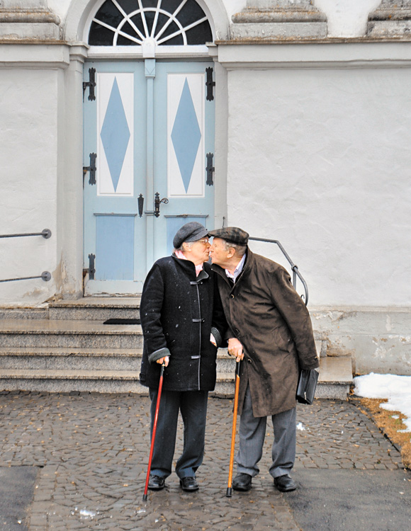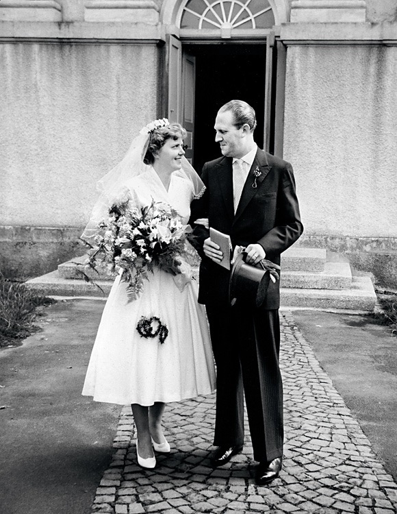 Im Sommer 1960 haben meine Mutter und mein Vater in Bad Marienberg im Westerwald geheiratet. Für unser alljährliches Familienwochenende sind wir (ihre drei Kinder) dieses Frühjahr mit unseren nun schon 85-jährigen Eltern nochmals dorthin gefahren, um mit ihnen in alten Spuren zu wandeln. Als wir uns die Kirche ansahen, kam zufälligerweise das Küsterehepaar vorbei und schloss sie für uns auf. Nach der Besichtigung hatten wir spontan die Idee, das Hochzeitsfoto nachzustellen. Gerade rechtzeitig: Zwei Tage später wurde die Kirche zur Renovierung eingerüstet.