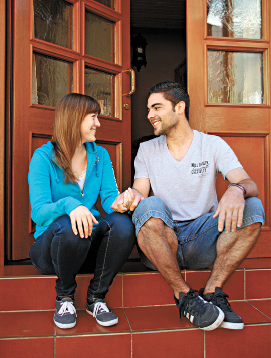 Im Jahr 2010 fuhr ich während der Semesterferien wieder in die alte Heimat. Auf der Geburtstagsfeier eines gemeinsamen Freundes sahen wir uns nach längerer Zeit wieder. Und es funkte. Nach mehreren Verabredungen wurden wir schließlich ein Paar. So konnten wir das Foto nachstellen, das damals auf der Treppe meines neu gebauten Elternhauses entstanden war.