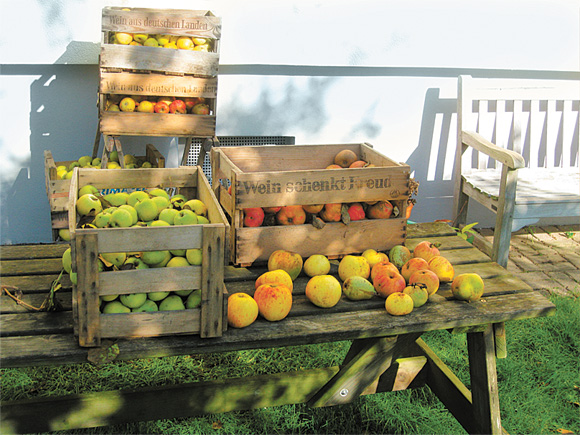 Hier in Hessen, aber auch in anderen Gegenden Deutschlands, werden zurzeit Äpfel zu einem hochwertigen Flüssigprodukt veredelt. Ob dies nun Most, Äppler, Vietz oder Stöffche genannt wird: der Herstellungsprozess ist immer ähnlich. Die Äpfel – möglichst viele verschiedene Sorten – waschen, mahlen, pressen und den Saft behutsam vergären. Während der Gärung ist er durch die Hefe trüb. Unser Wein wird üblicherweise bis Weihnachten gelagert (bis dahin hat er sich geklärt) und am Heiligabend erstmals verkostet. Auch wenn man sich, wie ich als Zugereister, an den Geschmack erst gewöhnen muss, an heißen Abenden im Sommer gibt es nichts Besseres als hausgemachten Apfelwein – wenn er denn nicht vorher weggetrunken wurde.