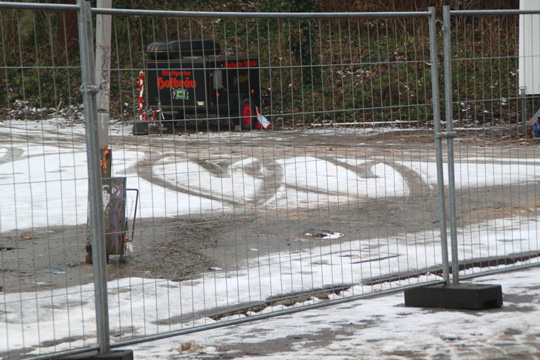 Seit Monaten nervt die Großbaustelle gegenüber von unserem Haus. Dieser Anblick – zwei Herzen hinter Gittern – lässt uns dann aber doch gerührt und auch ein bisschen beschämt über alles hinwegsehen.