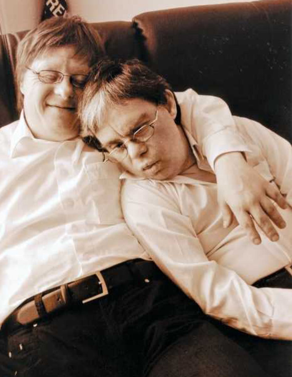 Bert und Dieter kennen sich seit Kindertagen. Sie sind Freunde. In der Dominikus-Gruppe haben sie ihre Begabungen und Talente entfaltet, jeder auf seine Art. Und sie haben gemeinsame Vorlieben, etwa die karierten Hemden auf dem Foto aus den siebziger Jahren. (Jetzt wird sonntags Weiß getragen!) Zweimal hat das Leben sie getrennt, doch immer wieder konnten sie an das alte Freundschaftsband neu knüpfen. Seit einiger Zeit leben sie im Hof Schürmann, in einer Wohnstätte für Menschen mit Behinderung – und alle sind gesegnet von ihrem Dasein. Bert ist ein eifriger Zeitungsleser, seine Tageszeitung ist ihm so wichtig wie der Kaffee zum Frühstück. Abends und am Wochenende liest er dann weiter – mit der Schere. Er wird sich freuen, wenn er sich und seinen Freund abgebildet findet.