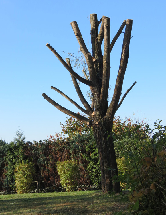 Im Herbst 2012 haben Fachleute die Weide auf meiner Wiese beschnitten. Danach tat mir der Baum leid: Ich wollte nicht glauben, dass er schon bald wieder seine beeindruckende Krone tragen würde. Aber jetzt, neun Monate später, freue ich mich sehr darüber, dass die Weide gesund ist und ein prächtiges Laubwerk gebildet hat. So dicht wird es nie wieder sein, wenn die Äste nachgewachsen sind. Dafür wird der Baum zu alter Größe finden.