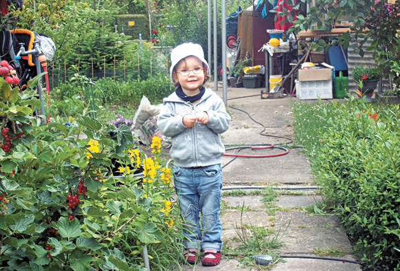 Das erste Bild zeigt mich im Alter von knapp zwei Jahren im Garten meines Großvaters. Das Bild meiner ebenfalls zweijährigen Tochter (unten) wurde 34 Jahre später, im vergangenen Sommer, aufgenommen. Mein Opa ist leider verstorben, aber der Garten ist erhalten geblieben und wird nun von meiner Tante bewirtschaftet. Man beachte die unterschiedliche Kleidung der Kinder: Zog man im Sommer 1978 noch Kleidchen und Kniestrümpfe an, waren im Juni 2012 Jeans und Sweatjacke das passende Outfit für kleine Gärtner. Nicht nur der Garten, auch der Modegeschmack der Mütter hat sich verändert…