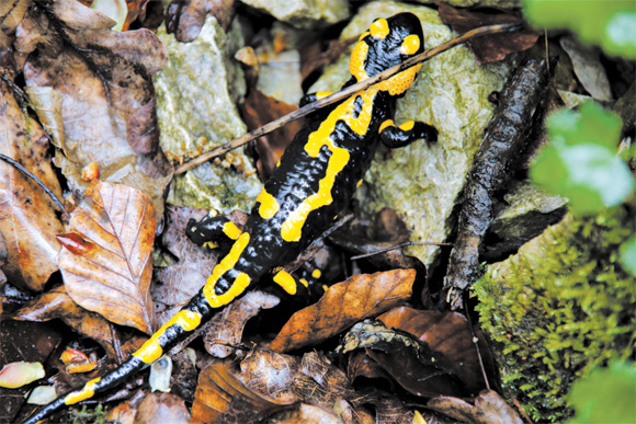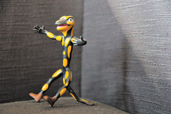 Ein Held meiner Kindheit, neben Bill Bo und den Mainzelmännchen, war Lurchi. Schuhekaufen mit Mama hasste ich. Aber wenn man danach mit einem neuen Abenteuerheft von Lurchi aus dem Laden entlassen wurde, waren selbst die schlimmsten Schmerzen der Anprobe mit meterlangen Schuhlöffeln verkraftbar. Die Heftchen erzählten in gereimter Form und in kindgerechter Schreibschrift die Abenteuer von Lurchi und seinen Freunden. Alle endeten jeweils mit der Zeile: „Und lange schallt’s im Walde noch: Salamander lebe hoch!“ Als ich vor ein paar Tagen meiner inzwischen 88-jährigen Mutter von einem Feuersalamander erzählte, den ich vor Kurzem in einem Seitental der Jagst fotografiert habe, kramte sie aus einer alten Spielkiste die kleine Gummifigur hervor, die mir damals eine Schuhverkäuferin geschenkt hatte: Lurchi!