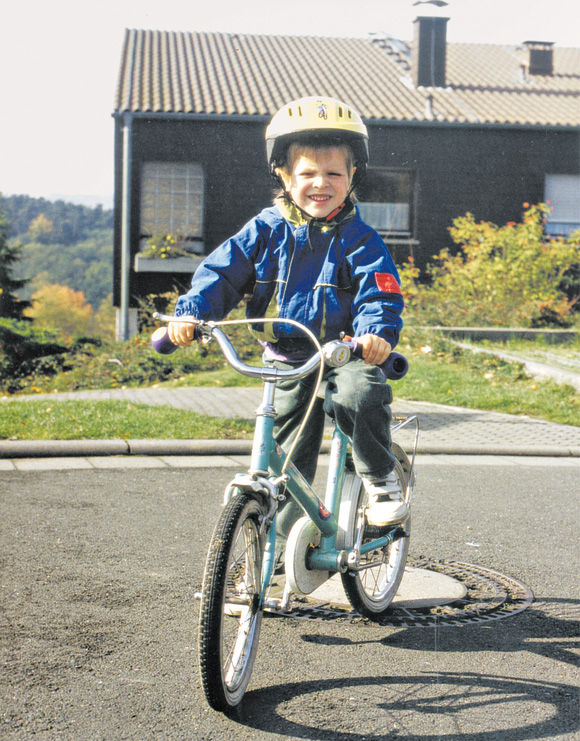 Das Bild links zeigt unseren Sohn Lukas auf einem Kinderrad, das er kurz vorher von seiner älteren Schwester übernommen hatte. Und auch für sie hatten wir das Rad schon gebraucht erworben. Als Lukas dem Rad dann entwachsen war, verkauften wir es weiter, und zwar an eine Frau, mit der wir damals beruflich zu tun hatten. Es sollte fortan ihrem Enkelkind gehören – damit schien die Fahrradgeschichte für uns zu Ende.