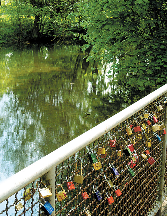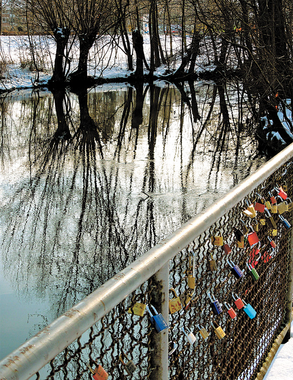 An einer Göttinger Brücke leuchten mit Schlössern besiegelte Treueschwüre in der Wintersonne. Monate später wieder an der Leine-Brücke: Ob all die Liebesbekenntnisse noch Bestand haben? Das Gedicht Le pont Mirabeau von Guillaume Apollinaire kommt mir in den Sinn: »Unterm Pont Mirabeau fließt die Seine… Wie der Strom fließt die Liebe, geht die Liebe fort…«