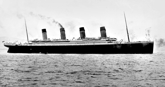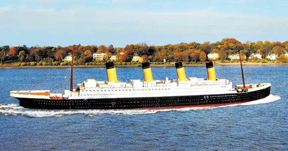 Links sehen sie ein Bild der Titanic, bei ihrer Indienststellung 1912 war sie das größte Schiff der Welt und galt als unsinkbar – was sich tragischerweise schon bei der Jungfernfahrt als Irrtum erwies. Gut hundert Jahre später gelang mir jetzt vor der Hamburger Rüschhalbinsel das Foto eines Titanic-Nachbaus, der allerdings weit von den früheren Größenrekorden entfernt ist: Das Schiff misst nur 1,30 Meter (und es handelt sich um ein von mir gefertigtes Papiermodell).