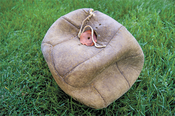 Als mein Vater (Jahrgang 1949) zehn Jahre alt war, schenkte ihm meine Großmutter einen Fußball aus echtem Leder (links) – ein wahrer Schatz für ein fußballbegeistertes Kind. Damit der Ball sich nicht mit Wasser vollsog (was ihn unbrauchbar gemacht hätte), musste er regelmäßig gefettet werden. Als mein Vater zum Wehrdienst eingezogen wurde und schließlich meine Mutter kennenlernte, wanderte der Fußball in den Keller. Trotz der sich lösenden Nähte brachte meine Großmutter es nicht übers Herz, ihn wegzuwerfen. Den Ball rechts daneben schenkte mir meine Mutter, als wiederum ich etwa zehn Jahre alt war, und zwar zur Fußball-Weltmeisterschaft 1994. Er ist bereits aus modernem Kunstleder, allerdings sind die einzelnen Stücke auch hier noch mit der Hand zusammengenäht. Anders als die heutigen Bälle haben beide weder aufwendiges Design noch hochtrabende Namen, dafür aber die Spuren von vielen glücklichen Momenten auf dem grünen Rasen.