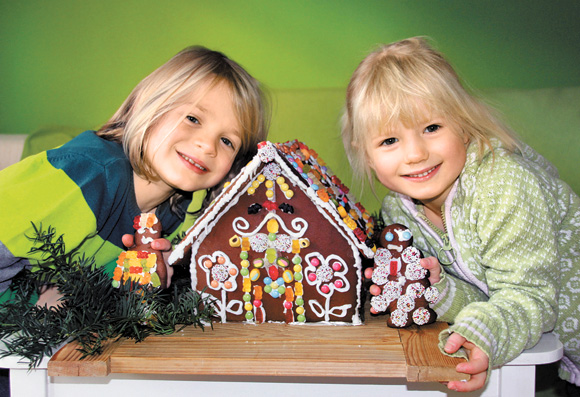 Ein großer Moment für die Kleinen: 1978 für mich und meine Schwester Marion (wir waren damals sieben und fünf Jahre alt) und jetzt für meine Kinder im gleichen Alter, Justus und Juli. Die Versuchsanordnung ist durch die Jahre immer dieselbe geblieben: Irgendwann im Advent entsteht aus den braunen Teigplatten, aus einigen Zahnstochern und jeder Menge Zuckerguss das Lebkuchenhaus. Dieses Jahr ist es ein bisschen windschief geraten, weil die Oma als Chefarchitektin gefehlt hat. Doch Not macht erfinderisch: Die Eiweiß-Zitronensaft-Puderzucker-Mischung haben wir für den rechten Zusammenhalt einfach trocken geföhnt. Das Tollste aber waren, sind und bleiben die vielen Kleinigkeiten zum Verzieren. Nur Kinder können das: gleichzeitig das Haus mit Gummibärchen bekleben und noch einmal die gleiche Menge Süßigkeiten in sich hineinstopfen.