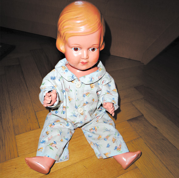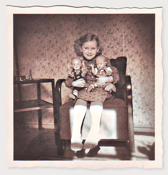Im Jahr 1954 wurde ich mit meinen beiden Lieblingskindern Hänsel und Gretel fotografiert. Sie begleiteten mich, bis ich mich mit zehn zu erwachsen für Puppen fühlte. Hänsel verlor einen Arm, Gretel wurde, wie damals üblich, in der Verwandtschaft herumgereicht und verschwand im Lauf der Jahre wie er.
