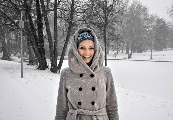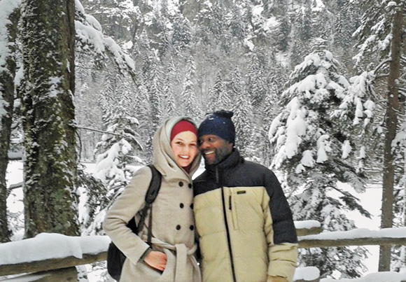Im Dezember 2012 besuchte ich meinen Bruder in Weimar, und auf einem Spaziergang bat ich ihn, mich im Schnee zu fotografieren. Damals skypte ich fast täglich mit Cyrille, den ich einige Monate zuvor während meines Praktikums in Kamerun kennengelernt hatte. Ich wollte ihm mit diesem Foto einen Eindruck vom deutschen Winter vermitteln. Wir hofften, dass er mit einem DAAD-Stipendium nach Deutschland würde kommen können. Doch bald darauf wurde sein Antrag abgelehnt. Wir standen vor dem Nichts und mussten uns entscheiden. Im vergangenen Juni haben wir in Kamerun geheiratet. Jetzt leben wir zusammen in Freiburg, und Anfang Dezember 2013 hat Cyrille seinen ersten Spaziergang im Schnee gemacht.