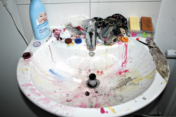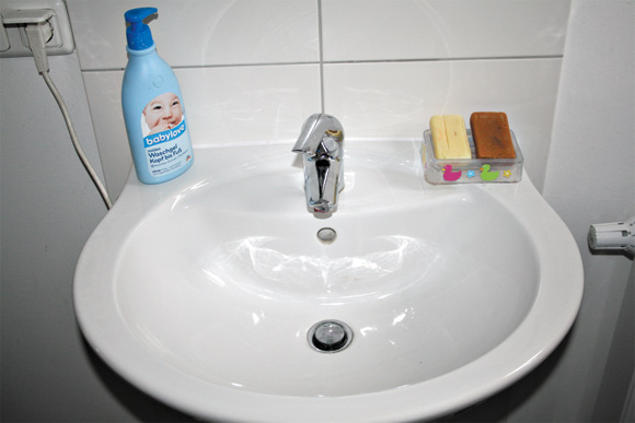 Man glaubt es kaum, aber zwischen diesen beiden Fotos liegt nur eine Viertelstunde. Ich hatte gerade das Waschbecken einer Generalreinigung unterzogen, als meine Kinder mich fragten, ob sie sich schminken dürften. Kurz darauf sah unser Becken dann so aus, als wäre ein ganzer Karnevalszug hindurchmarschiert. Aber, was soll’s. Und so ist’s ja eigentlich auch viel bunter, schöner, und irgendwie lebendiger… !