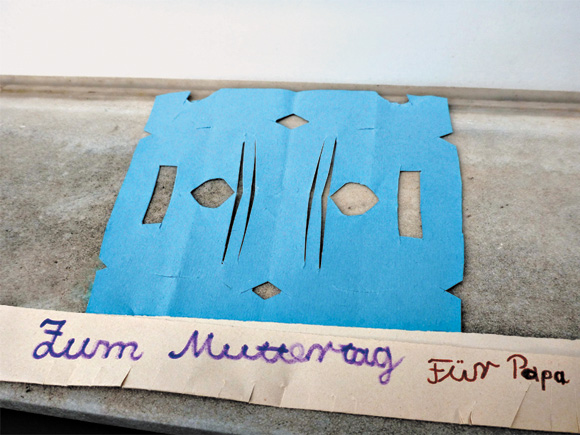 Unsere Tochter Julienne, damals acht Jahre alt, überreichte ihrer Mami zum Muttertag 1986 ein hingebungsvoll gemaltes Bild. Ihr angeborener Gerechtigkeitssinn muss sie offenbar angespornt haben, ihren Papa an diesem Tag nicht leer ausgehen zu lassen. So entstand dieser Scherenschnitt, der kürzlich beim Entrümpeln wieder ans Licht kam. Ursula und Dieter Heiss, Remseck am Neckar