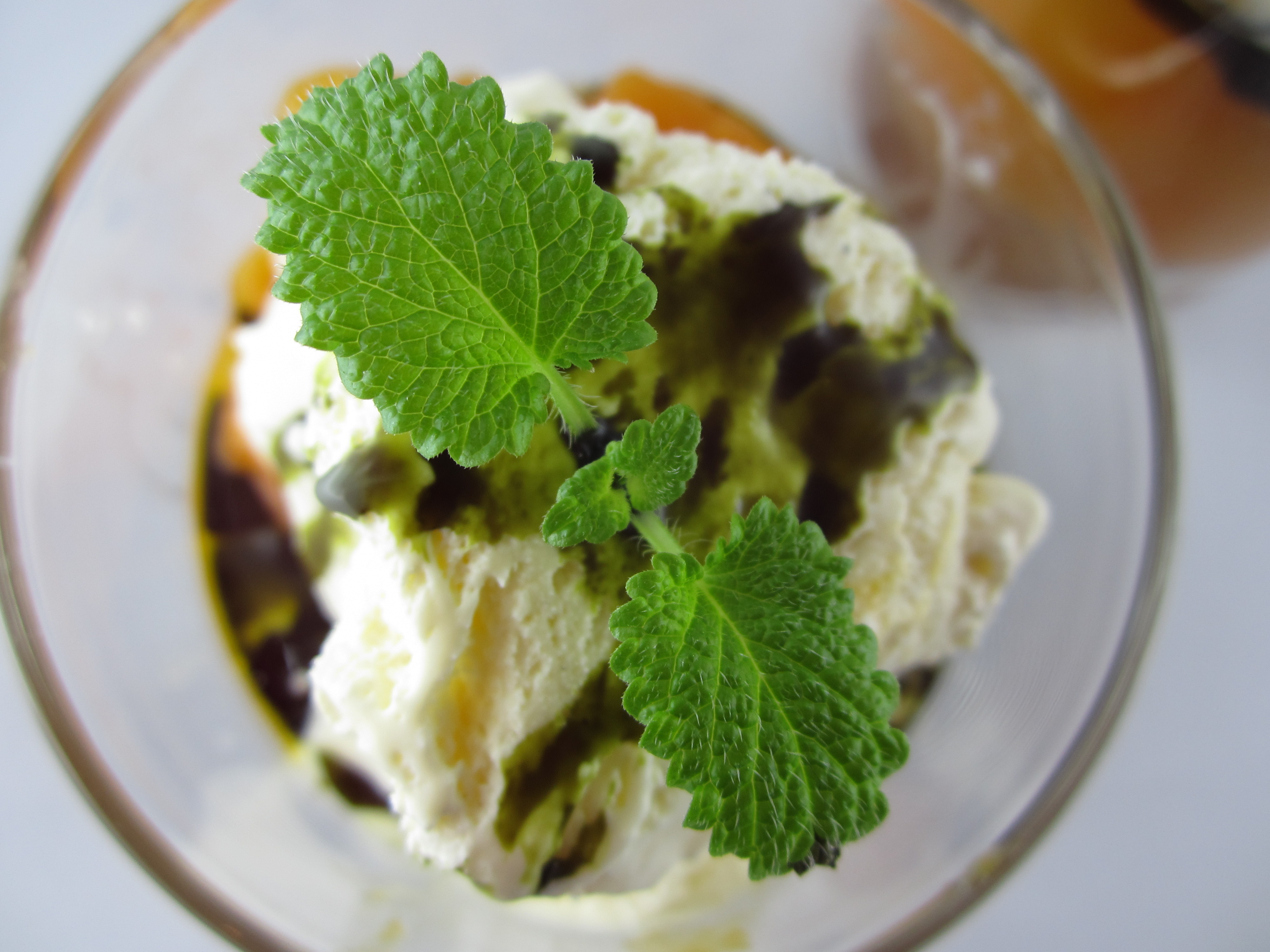 Kürbis-Ingwer-Ragout mit Vanilleeis und Kürbiskernöl