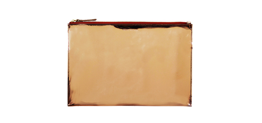Schimmert in Kupfermetallic wie eine Christbaumkugel: Clutch von Perret Schaad