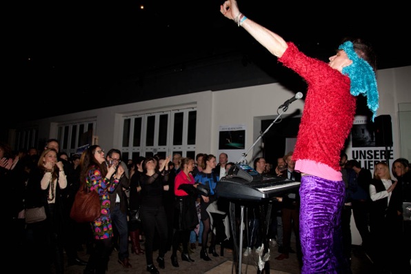 Zum Auftakt der Party wirbelte der kanadische Musiker Stephen Paul Taylor, in Berlin bekannt durch seinen legendären Auftritt im Mauerpark, über die Bühne. Danach brachte DJ Johannes Dudziak das Publikum zum Tanzen.