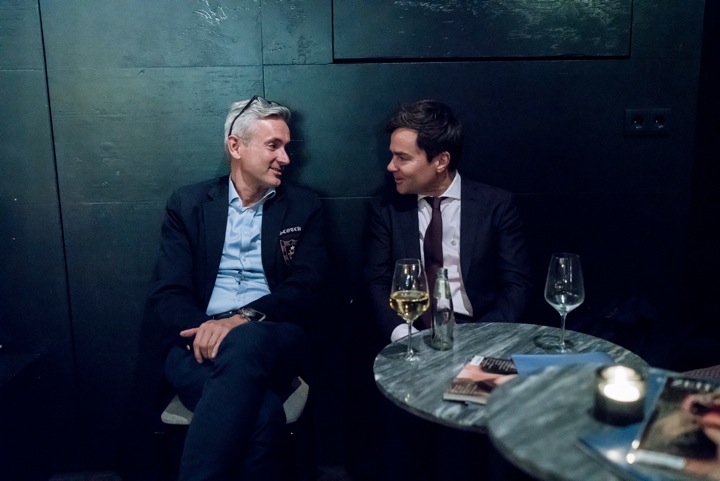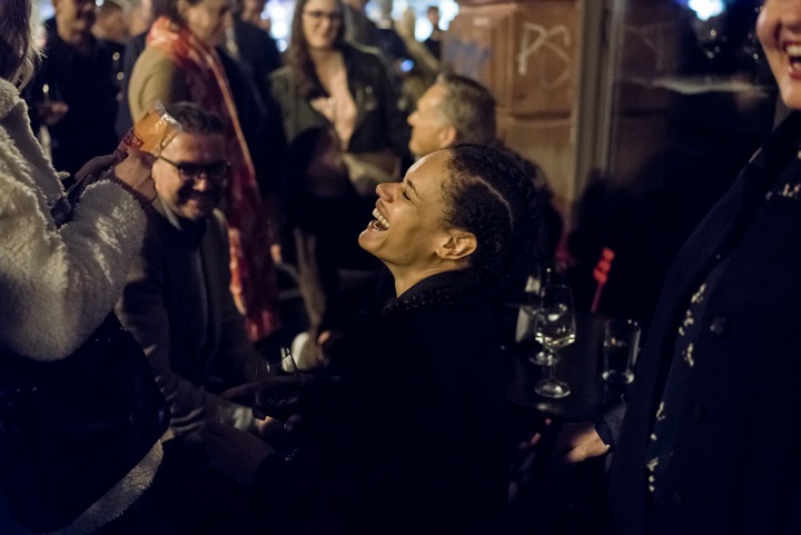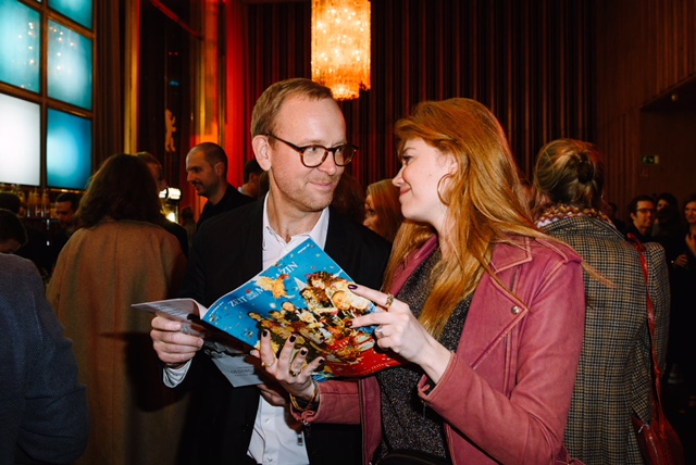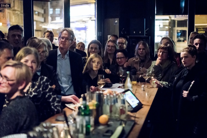 Unter den Gästen des Abends in der Bar Plank waren die Schriftsteller und Schriftstellerinnen Ronja von Rönne, Helene Hegemann, Thomas Meinecke, Laura Karasek, Deborah Feldmann und Eckardt Nickel, die Verleger Philipp Keel von Diogenes, Siv Bublitz von S. Fischer, Helge Malchow von Kiepenheuer & Witsch, Christiane zu Salm vom Nicolai Verlag, Joachim Unseld von der Frankfurter Verlagsanstalt, Ulrich Genzler von Random House und Marlene Taschen vom Taschen Verlag, ZEIT-Verleger Stefan von Holtzbrinck und ZEIT-Geschäftsführer Rainer Esser sowie die Geschäftsführerinnen des ZEIT-Weltkunstverlags Sandra Kreft und Nathalie Senden, der Musiker Stefan „Shantel“ Hantel, der kürzlich seine Kandidatur zur Oberbürgermeister-Wahl der Stadt Frankfurt bekanntgegeben hat, Friedrich Liechtenstein aus Berlin, DJ und Nachtleben-Impressario Ata vom Robert Johnson Club, die Schauspielerin Pegah Ferydoni, die Modemacherin Leyla Piedayesh von La La Berlin, ZDF-Aspekte-Chef Daniel Fiedler, Chefredakteur Nils Bremer vom „Journal Frankfurt“ und Alfons Kaiser von der „FAZ“. Aus der Frankfurter Kunstszene waren Philipp Demandt, Direktor des Städel Museums, die Galeristen Philipp Pflug und Michael Neff, Künstler Martin Wenzel, Kuratorin Mahret Kupka vom MaK ebenso zu Gast wie die Fotografin Esther Friedman, deren Bilder ihres ehemaligen Partners Iggy Pop vor einigen Jahren erstmals im ZEITmagazin erschienen sind.