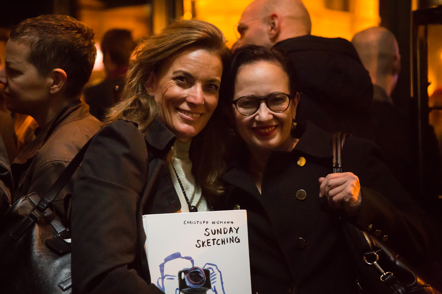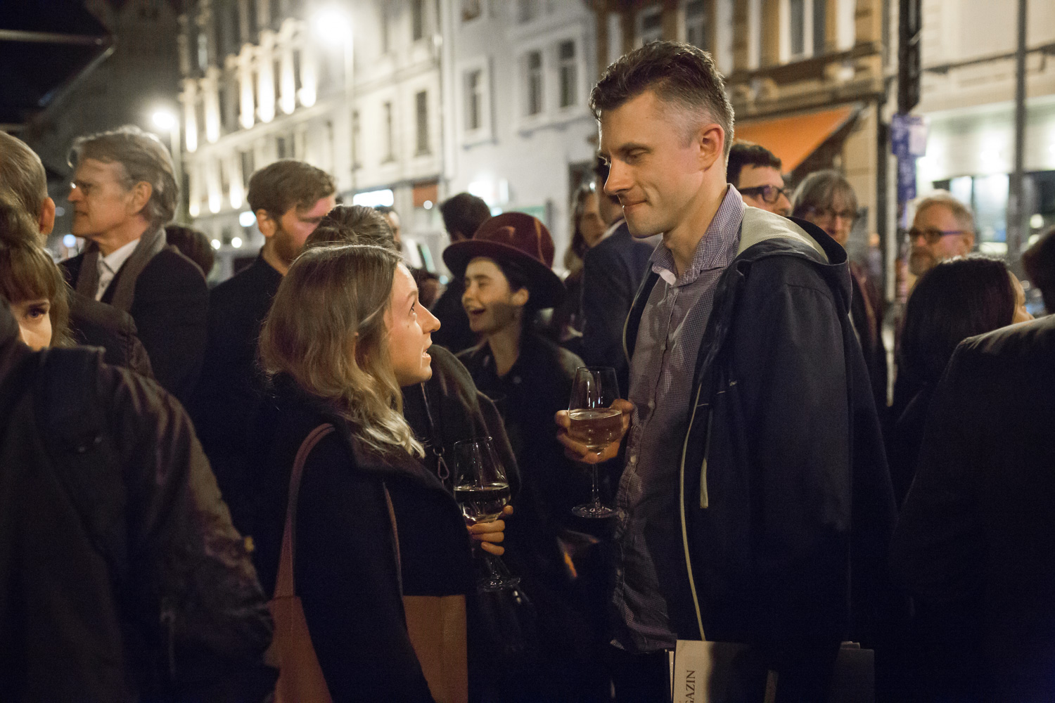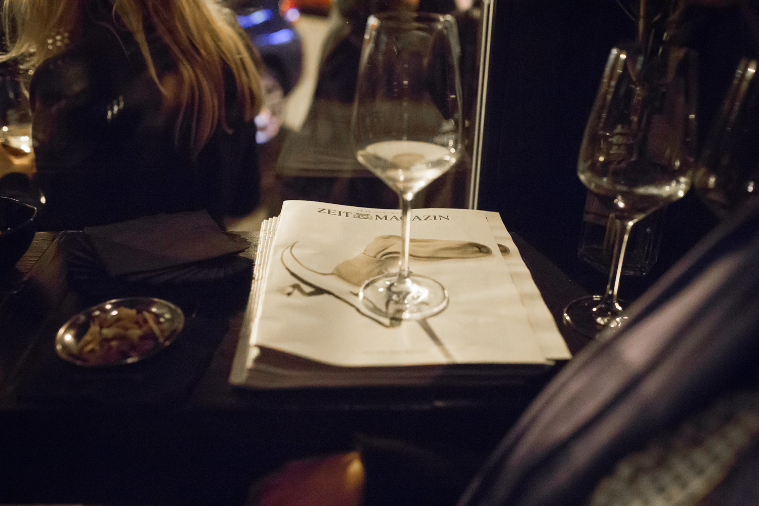 Unter den Gästen waren das russische Model Lera Abova, das auch das Cover des aktuellen ZEITmagazins ziert, der russische Maler Nikolai Makarov, die Schauspieler Nikolai Kinski, Claudia Michelsen, Laura Tonke, Lea van Acken und Anna Bederke, der Galerist Johann König, die Künstler Martin Eder, Sarah Illenberger und Christoph Niemann, der Unterhaltungskünstler Friedrich Liechtenstein und sein Sohn, der Schriftsteller Franz Friedrich, die Schriftstellerin Kat Kaufmann, die Designerin Saskia Diez, die Fotografen Oliver Helbig, Gregor Hohenberg, Peter Langer, Vitali Gelwich, Nada Lottermann, Vanessa Fuentes, ZEIT-Chefredakteur Giovanni di Lorenzo und ZEIT-Geschäftsführer Rainer Esser, Weltkunst-Chefredakteurin Lisa Zeitz, 032c-Chefredakteur Joerg Koch, die Stil-Blogger Mary Scherpe und Carl Jakob Haupt, der Comedian Oliver Polak, der norwegische Designer T. Michael und der Designer Jörg Ehrlich und die Moderatorin Wana Limar. Besondere Gäste erschienen kurz vor Mitternacht: Die Musiker von Coldplay kamen nach ihrem Konzert im Olympia-Stadion in die Kantstraße – unter ihnen ein entspannter, blendend aussehender Chris Martin mit Baseballkappe.