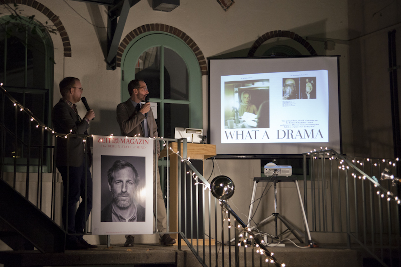 Unter den Gästen im denkmalgeschützten Innenhof des Deutschen Hauses waren die Künstlerin Leanne Shapton und ihr Mann James Truman, Berater des New Yorker Hoteliers André Balazs, die Lena-Dunham-Illustratorin Joana Avillez, Luise Stauss vom Modern Farmer-Magazine und Felix Burrichter von der Architekturzeitschrift Pin-Up, der Art-Direktor der New York Times Book Review Nicholas Blechman sowie die New York Times-Autoren Liesl Schillinger und Nicholas Kulish, die Krimiautorin Andrea Schenkel, die zwischen Regensburg und New York pendelt, die Modemacher Dirk Schönberger von Adidas und Vladimir Karaleev aus Berlin, der USA-Chef der Kering-Gruppe Laurent Claquin und Max Vallot, Gründer der Agentur District Projects, die Fotografinnen Lina Scheynius und Hadley Hudson, Model Luca Gadjus und Fotograf Max von Gumppenberg.