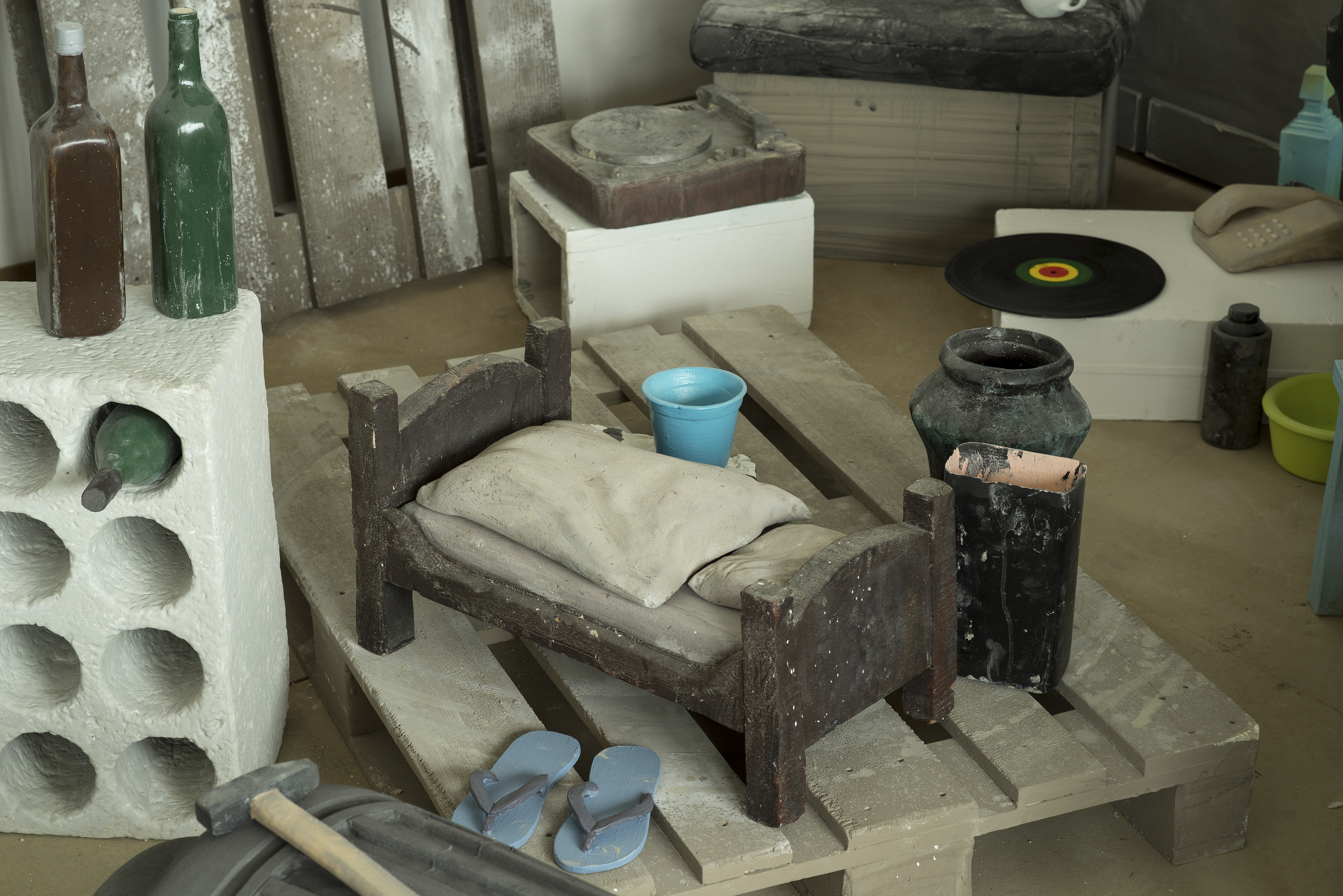 Es ist immer wieder faszinierend Peter Fischlis und David Weiss‘ Film Der Lauf der Dinge zu sehen. Mit ihm wurden die beiden Künstler 1987 bekannt. Man muss einfach staunen, wie die arrangierten Objekte ein Eigenleben entwickeln und ihre Energie im Dominoeffekt fortgeführt wird. In der Ausstellung Eine Ansammlung von Gegenständen in der Galerie Sprüth Magers beschwört das Künstlerduo nun wieder die Macht der Dinge. Nachgebildete Atelier-Utensilien aus den Jahren 1982 bis 2013 werden die Galerie in ein buntes Chaos verwandeln. Die Akkumulation von Polyrethanobjekten ist eine Archäologie der dreißigjährigen Zusammenarbeit von Fischli und Weiss, die 2012 mit dem Tod von David Weiss endete.